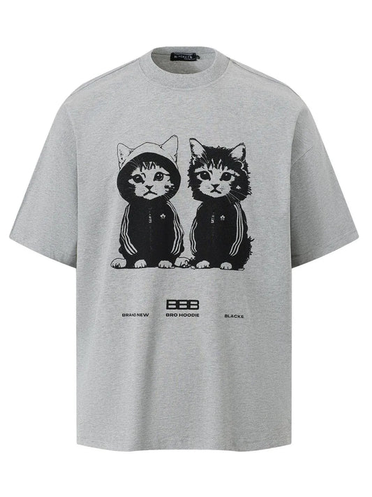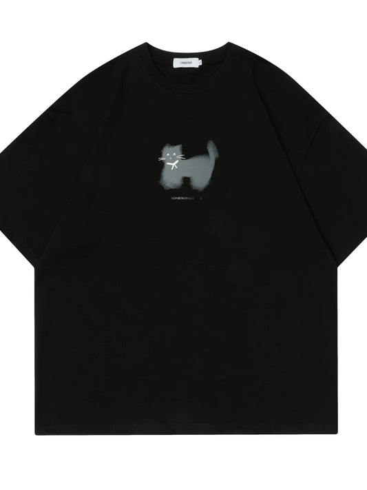 FAM-FAM Cat Round Neck Dropped Shoulder T-Shirt